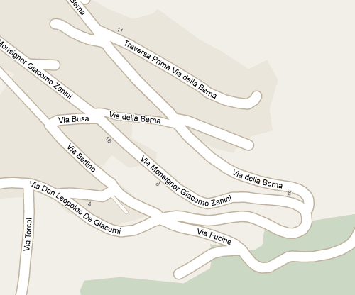 Von der Via Fucine über die Via Monsignor Giacomo Zanini, nach rechts in die Via della Berna einbiegen.